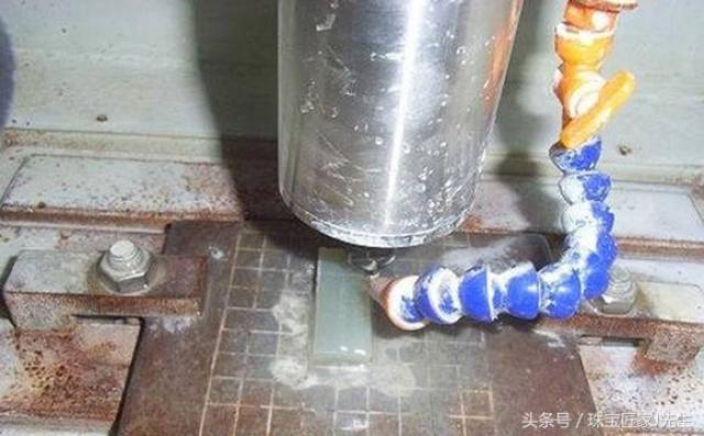 采用钢制的模具,利用高硬度的碳化硅做解玉砂,通过机器带动模具在玉料表面以超声波的频率来回振动摩擦。