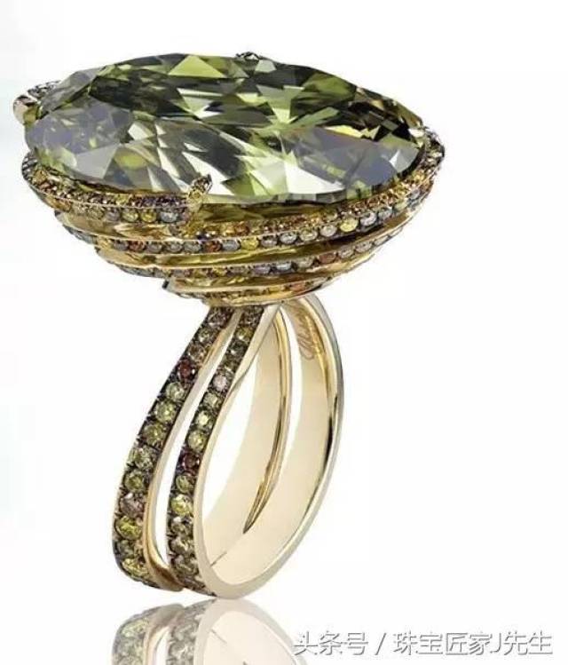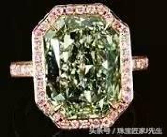 另外一颗著名的变色龙钻石是8.04克拉的暗彩灰绿变色龙彩钻。整颗钻石周围被粉钻环绕,镶嵌在18K彩金戒指上。这件钻戒的整体价格是两千一百万美元。↓↓↓