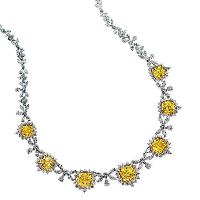 是有色钻石中的常见品种,若颜色呈现金黄亮彩〝金丝雀黄〞,则价值惊人。如明艳动人的蒂芙尼名钻(The Tiffany),在1983年估价已达1200万美元。