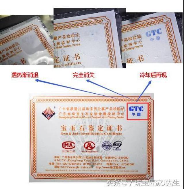 ↑↑↑ 广东省珠宝玉石及贵金属检测中心(GTC)防伪,遇热褪色