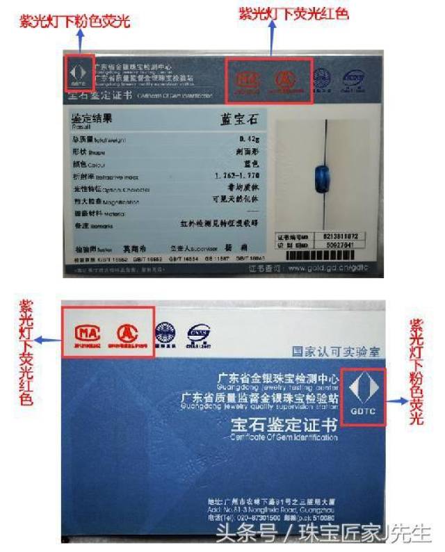 每一张鉴定证书上都会有检测样品的照片,这照片都是实物拍摄,所以一定要对照实物与照片是否相似。同时也可以通过照片知道检测样品的形状、颜色和类别。