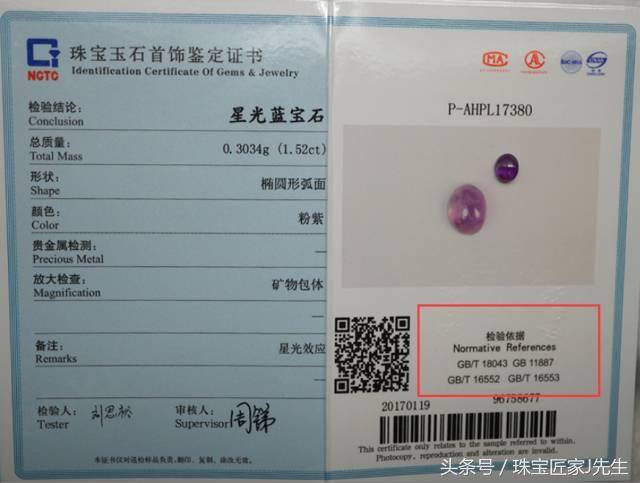 以上所有的内容都要遵行以下几个标准,同时还会在证书上标注出其鉴别依据的出处: