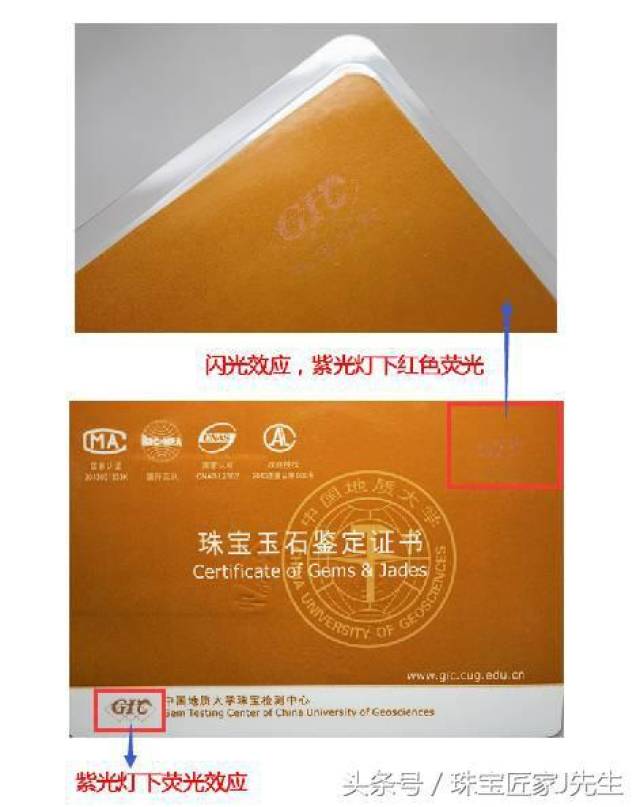 盗版证书/假证书频繁出现,各个机构为了自身的权益也是煞费苦心的做了很多防伪措施,如国检NGTC有防伪码、激光防伪标示、紫外灯下可见的logo荧光等等。