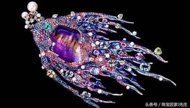 ↑↑↑ 陈世英《鱼儿的梦》胸针,主石为紫黄晶