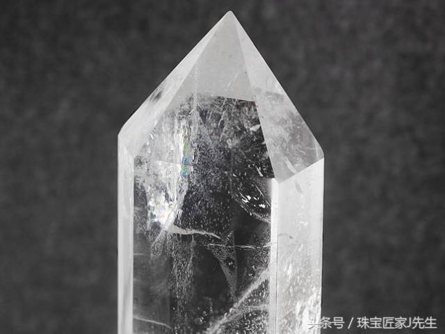 5.天然水晶内部经常会出现有色带、棉絮、裂隙裂纹,偶尔也会有胆泡。但肉眼下看很干净没有色带的天然水晶也有很多,没有瑕疵并不代表是假的。