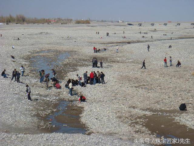 籽料的开采没有山料那么危险,拿着铁锹到河坝里,碰运气就是。捞玉人这份工作,在和田已有几千年历史,但是籽料采挖不啻于大海捞针,完全是看运气的事情,有的老乡挖几铁锹就会出一块,但大部分是十天半月,甚至一年一个玉石见不到。