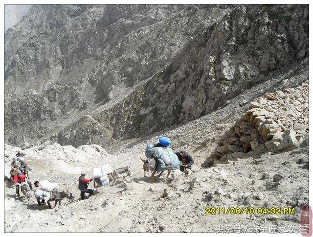 昆仑山巍峨陡峭,高山上几乎没有路,到了车行不了的地方就换成驴,驴也上不了的地方就得人来扛。