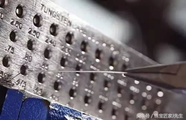 拉丝板由粗到细排列着四五十个不同直径的眼孔。眼孔一般用合金和钻石制成,最小的孔比头发丝还要细。