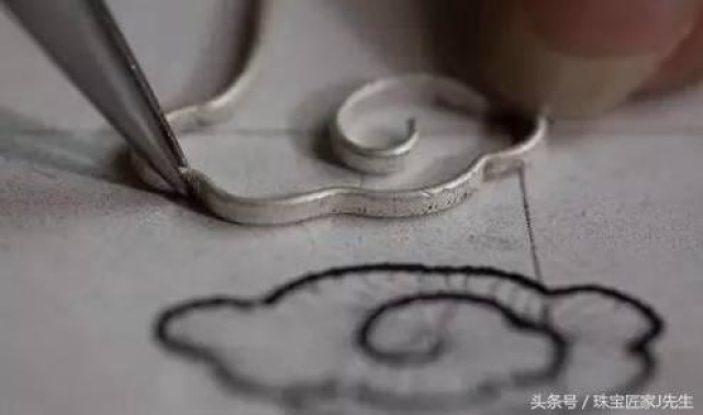 4.填丝: 把制成的花丝或是素丝充填在掐制好的纹样轮廓中。