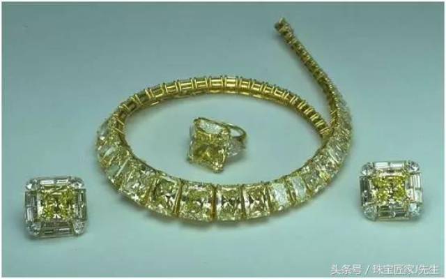 还有一套由卡地亚设计制作,用了357克拉黄钻的珠宝套件。