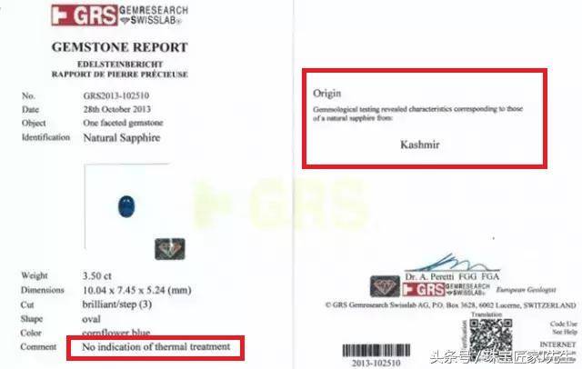 宝石产地都是实验室在数十倍甚至上百倍的显微镜下,通过观察宝石内部包裹体鉴定的。这种贵重的东西,一般不会没有配备国际权威证书的。