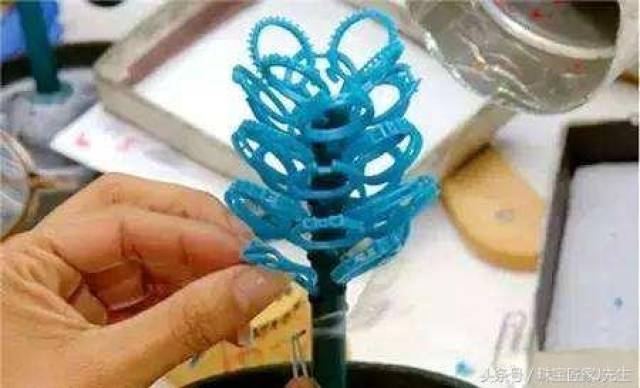 将制作好的蜡模按照一定的顺序,分层焊接在蜡棒上,最终得到一棵形状酷似树木的蜡树。焊接时要尽可能多焊上,但不能让蜡模彼此接触。
