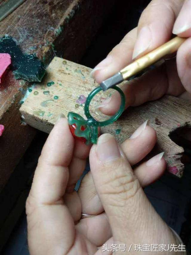 在手工雕蜡过程中,还需要根据设计图,把配石石位画在蜡模上,依此雕出石位。