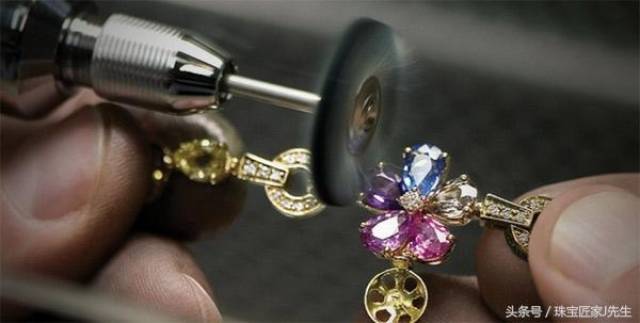 宝石镶嵌完成后,需要对金属表面和细节部分做进一步的抛光处理。部分首饰需要对表面电金处理。