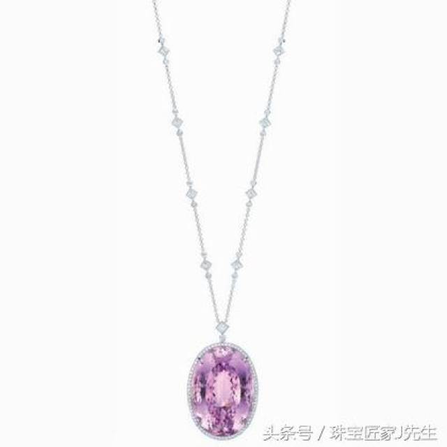 Tiffany还在175周年之际推出了一款重达175克拉的紫锂辉石吊坠,周围饰以铂金镶钻,搭配铂金镶钻项链。