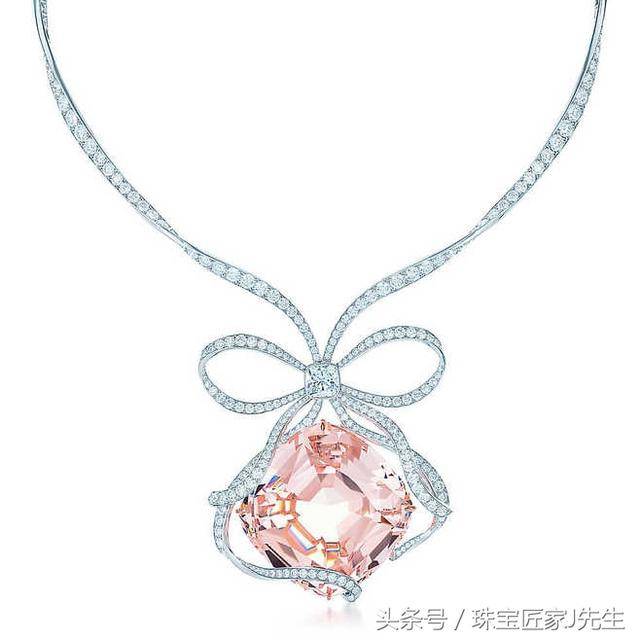 Tiffany为庆祝175周年更是推出了一条175克拉的摩根石项链,硕大的摩根石被总重2克拉的钻石“缎带”所缠绕,宛若一件精美的礼物。