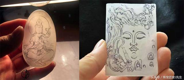 除了购买成品,现在越来越多的朋友也倾向于选择个性定制。一般玉石雕刻的个性定制中,玉雕师都会先初步勾勒画稿,和客人确认后再动刀雕刻。在沟通画稿的时候,就可以看出玉雕师傅功力深浅,从而决定是否继续进行。