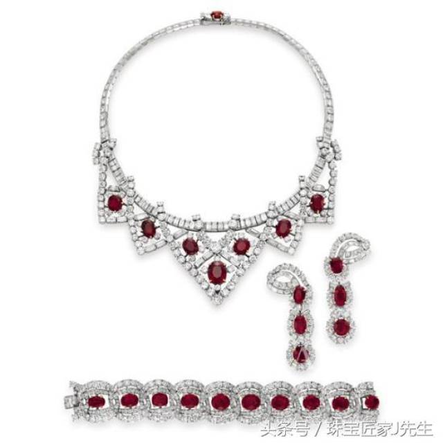这套Cartier红宝石套装包括一条项链、一对耳环和一个手镯,在艳丽的红宝石衬托之下,伊丽莎白的脸庞更加明艳动人。
