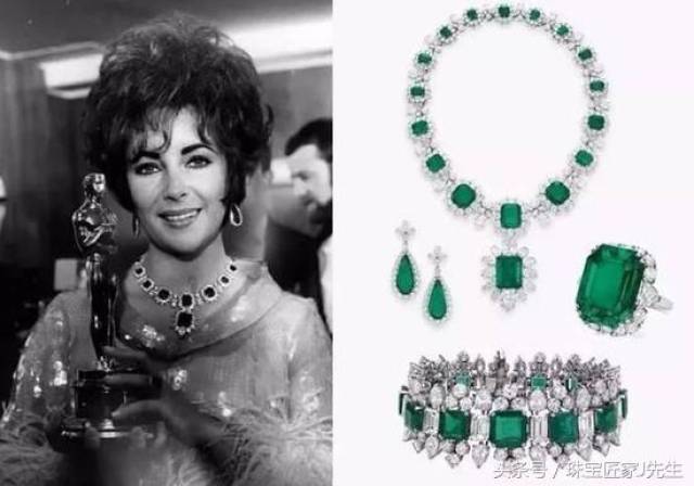 其中,戒指是理查德送给伊丽莎白的第一件礼物,重达23.44克拉的祖母绿胸针是两人的订婚礼物,总重60.5克拉的项链则是结婚礼物。