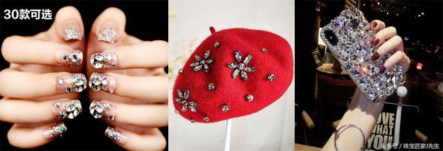 这位替身有自己的艺名——水钻,通常用于工艺品或易耗品的装饰,例如:美甲用水钻、手机壳用水钻、服装鞋帽用水钻等。