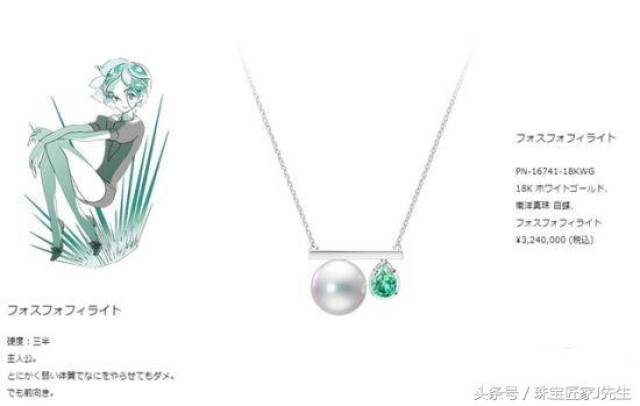 不看“战五渣”的脆弱属性,磷叶石的颜色还是十分美丽的,比如《宝石之国》的逆天周边,价值20万元人民币的磷叶石项链。