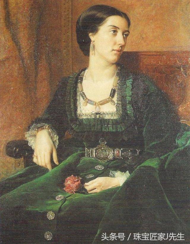 1873年,奥斯本宫宴会上,维多利亚女王对这套首饰青睐有加,这件手镯因其精美的工艺以及独特的历史价值,在宴席上被皇室传看。后来,这套首饰连同这幅油画一同进入大英博物馆珍藏。