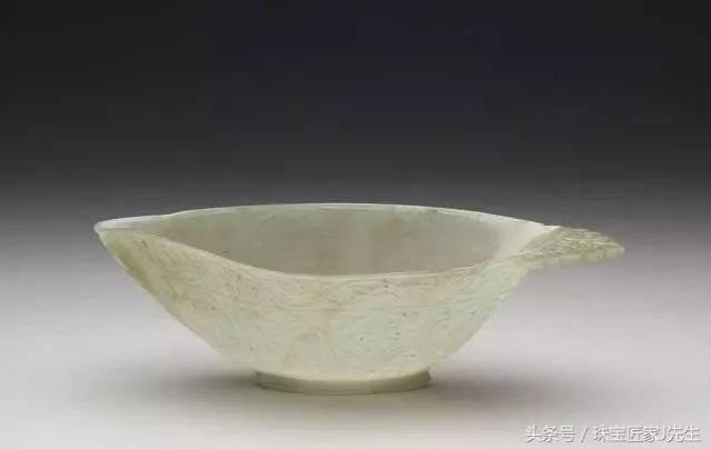 在古代,玉器器皿只有权贵可以使用,工匠们除了在造型雕刻上极尽巧思,在工艺上也追求巧、活、薄的极致,为我们留下了惊艳不已的瑰宝。比如这件唐代白玉忍冬纹八曲长杯,就是其中翘楚。