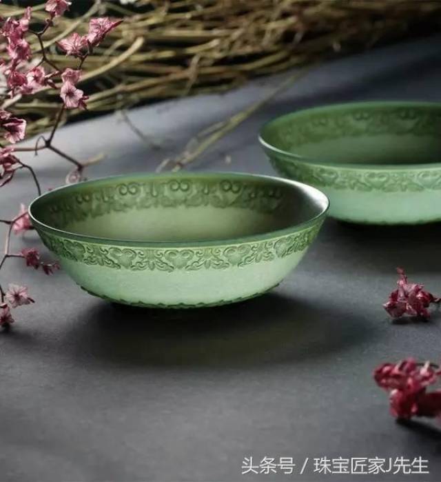 选择碧玉和青玉是因为其结构致密、韧性好,不易崩口,此外产量大,更适合制作费料的器皿。制成薄胎玉器后,还能让玉色减退青色返白,倍显玉器的均匀、通透之美。