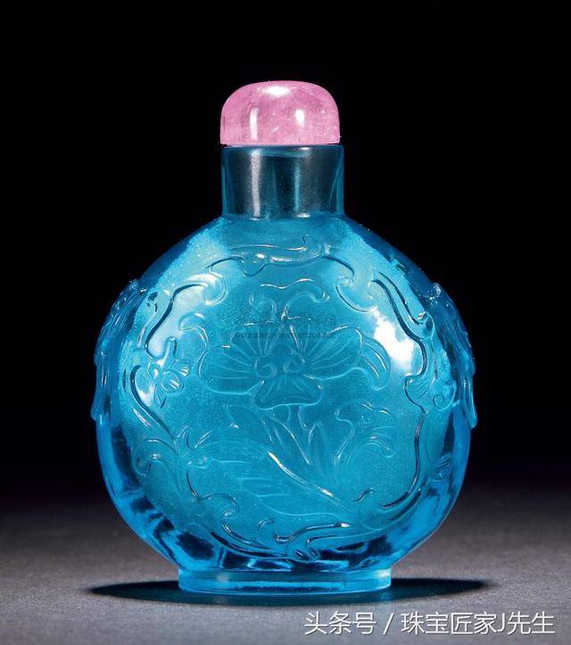 清乾隆 御制海蓝宝石料刻花卉纹鼻烟壶