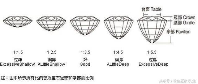 太薄镶嵌的时候容易破损太厚从台面上看宝石就会在腰处看到阴影。在给钻石评腰部的时候就会涉及到腰厚适不适中,厚了还是薄了,这同样也适用于彩色宝石。