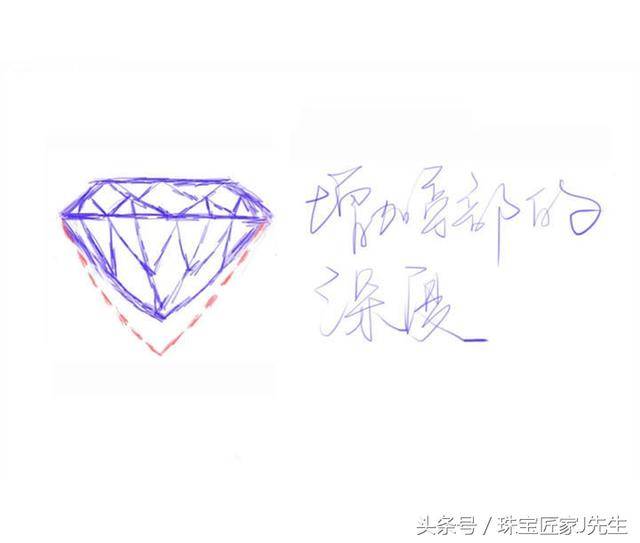 虽然有时候个别宝石在标准角度的情况下加深亭部会得到一些满意的效果比如更好的亮度更深的颜色,但是大多数情况下,宝石亭部过深就会给人一种比例严重失调的感觉,有时候也会造成黑底效应,同时给镶嵌带来麻烦。