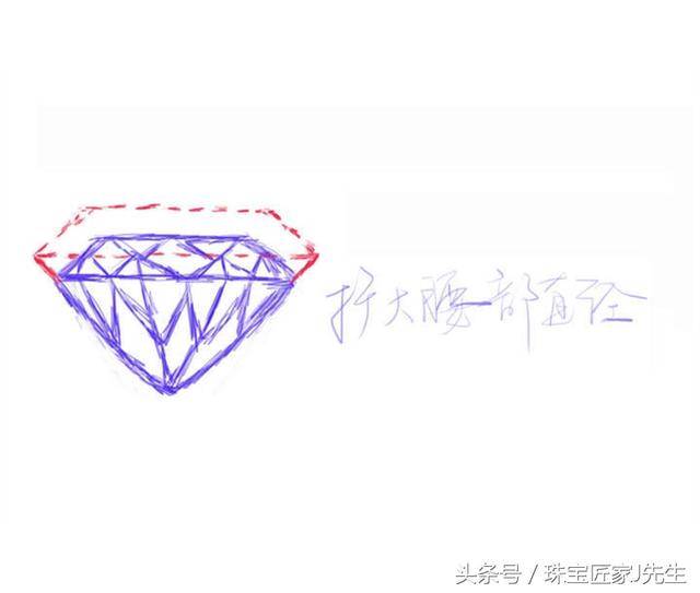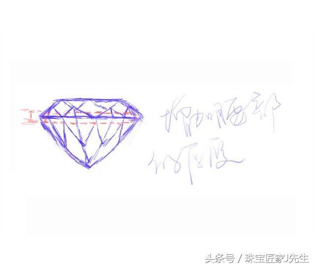 如果一个宝石从比例上去看腰厚应该为2mm,而却在切的时候加厚到4mm,那么整个宝石的体积就会增大,重量也就无形中增加了。