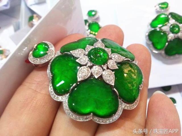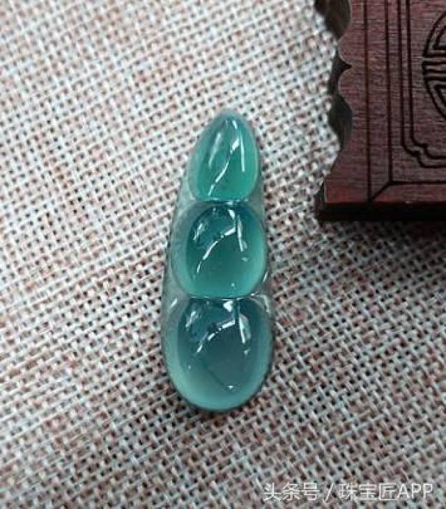 上面三张图对比,可以看出第一张图颜色艳丽但轻飘,中间光泽泛白,这就是近年市场特别多的永楚料,尤其是各种珠宝展,有的展商满摊位都是这种“帝王绿”。