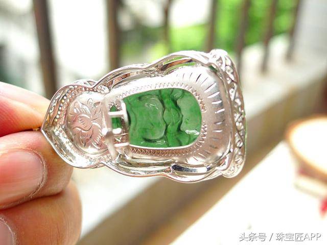 封底镶嵌是翡翠镶嵌常用的方法,金属反射光泽,能让翡翠显得水头更好。但高货翡翠即使封底,也会做可以打开的活底,方便查看裸石。