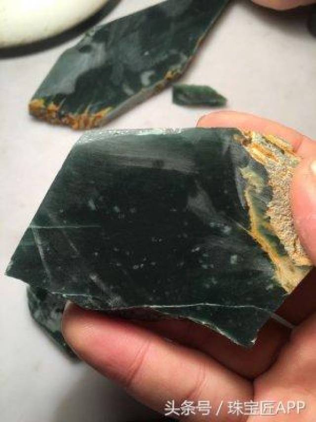 无独有偶,还有一种也是靠挖成薄片才能C位出道的翡翠,产自危地马拉,也叫危料。危料就有点传奇了,是被1998年的“米奇”飓风刮出来的。