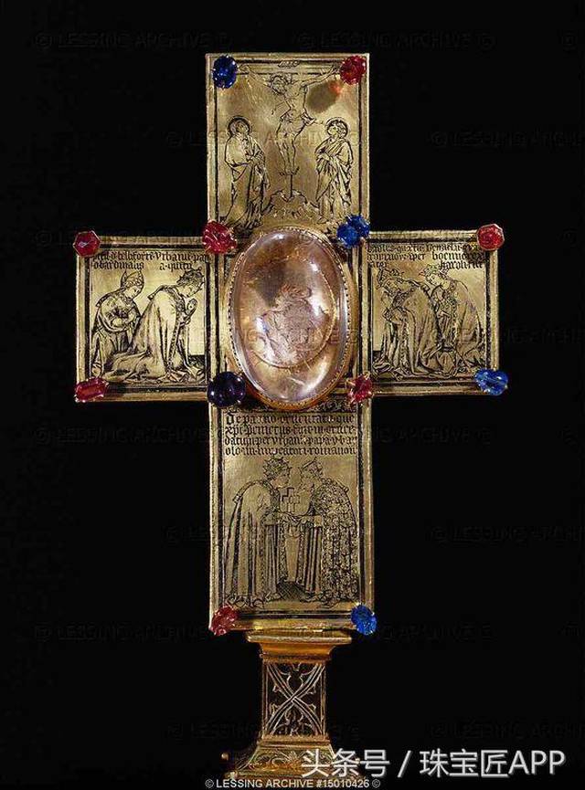 此时的珠宝首饰并不是作为一种装饰存在,而是参加重要庆典时才能出现的仪式性饰品,其装饰纹样多为基督教相关内容,如用宝石组成的“十字架”封面,刻有圣经故事的十字架等等。