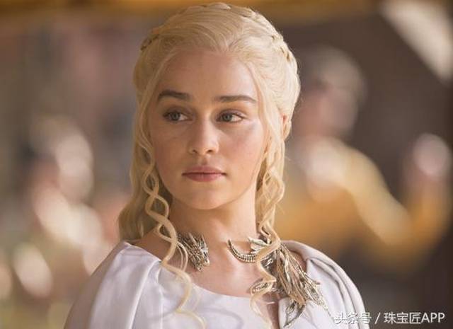 当然,把徽章首饰玩得最溜的当属塔格利安家族的“龙妈”了,陆海空三军齐备的龙妈,不仅随身携带三条龙,连首饰也都是龙形,甚至还有珠宝商推出了“龙妈”周边首饰!