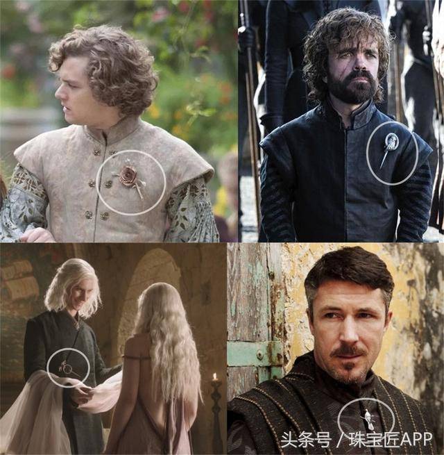 不知道大家发现没有,《权利的游戏》中,环形胸针的出现频率非常之高,从徽章胸针到“国王之手”,胸针几乎成为了男性角色必备的配饰。