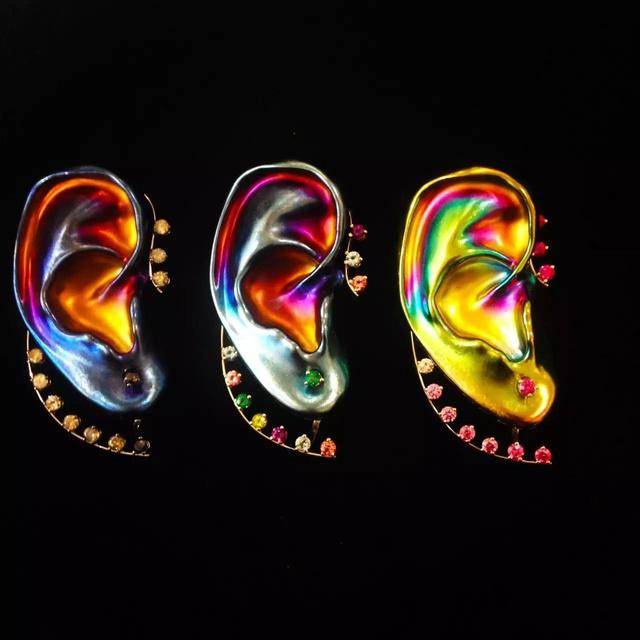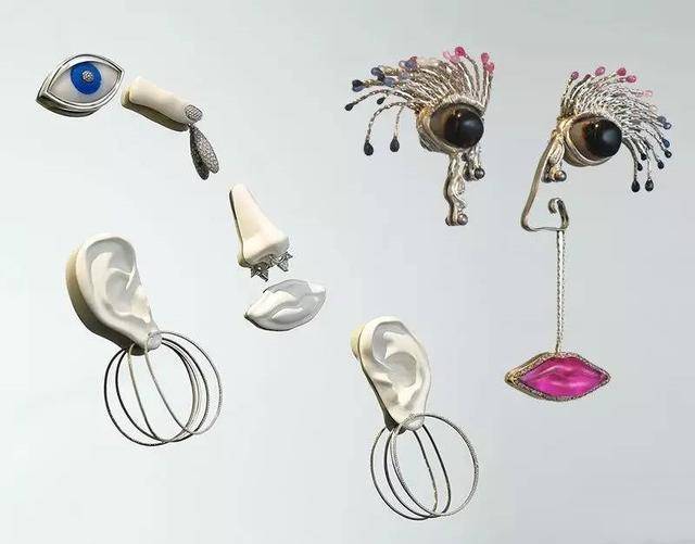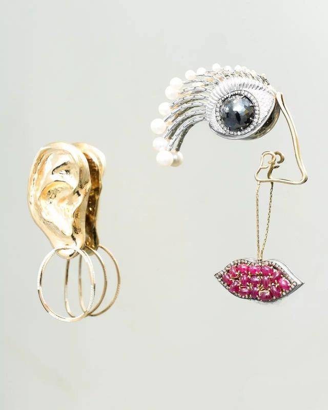 她的作品,有一种又酷又前卫的街头感,改变了人们对于传统珠宝的定义,无论是对于五官的解构: