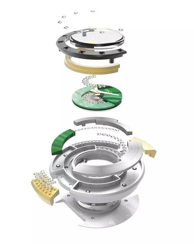 总共超过100000种奢华材料组合可供选择:18K黄金、天然宝石、钻石和贵重宝石、珍珠母贝、以及各种优雅颜色的原装异国风情FENDI皮革表带。