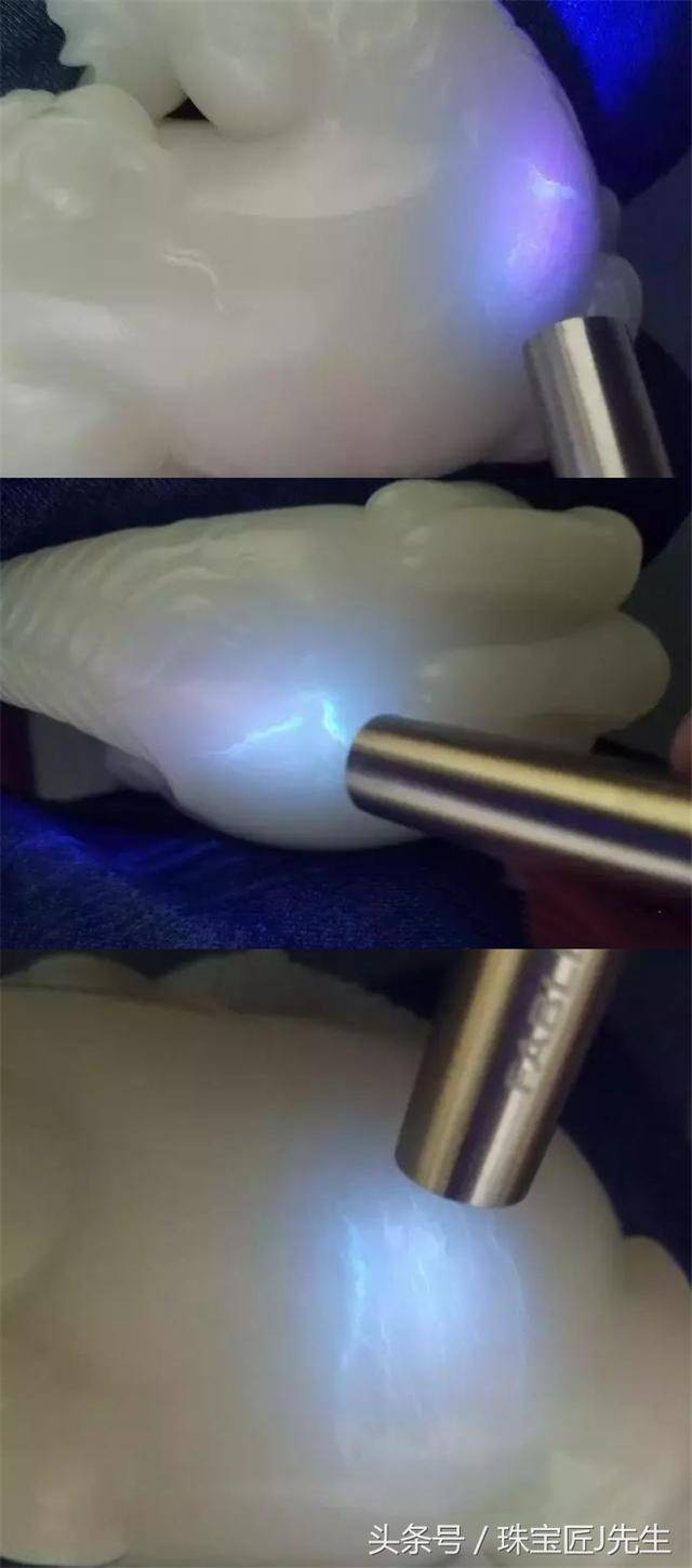 ( 我们翻遍了全公司的碧玉首饰,小到戒面、吊坠,大到珠串、手镯,就没有一个有荧光反应的,想拍实拍图怎么就这么难?看来我们急需要一次“上当受骗”了。。。 )