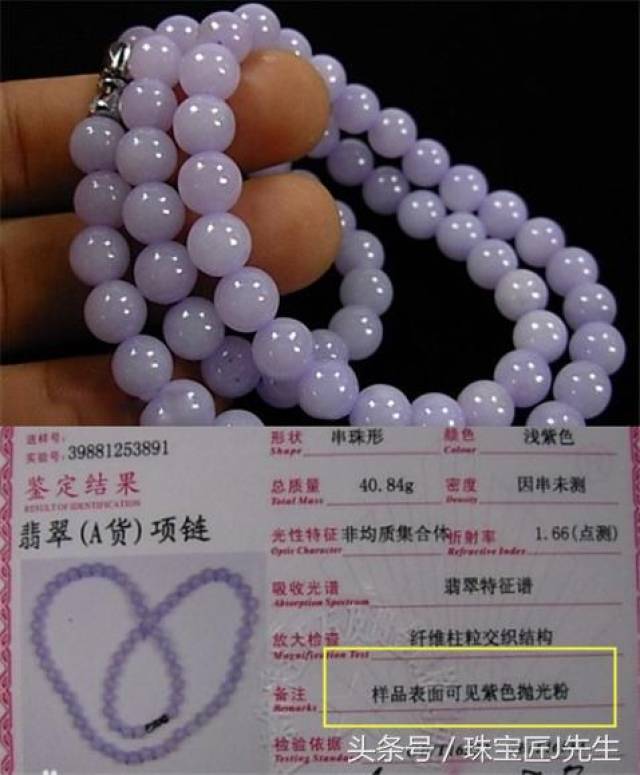 最后,可以看证书,尽管经过着色剂“调教”的翡翠可以开具证书,但证书上一定会标明“样品表面可见X色抛光粉”。