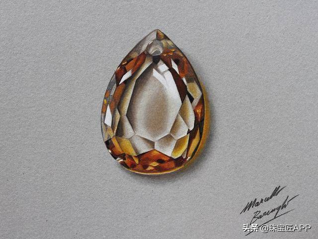 想完成这样一幅手绘,要经过反复练习,对宝石的切割、光影非常了解,才能画出写实和艺术感完美结合的手绘图。