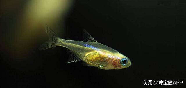 X-Ray Fish/大颚细锯脂鲤,俗称X光鱼,是一种小型观赏鱼。它鱼体无色,半透明,银色囊中器官可清晰可见,就像在拍X光片一样。