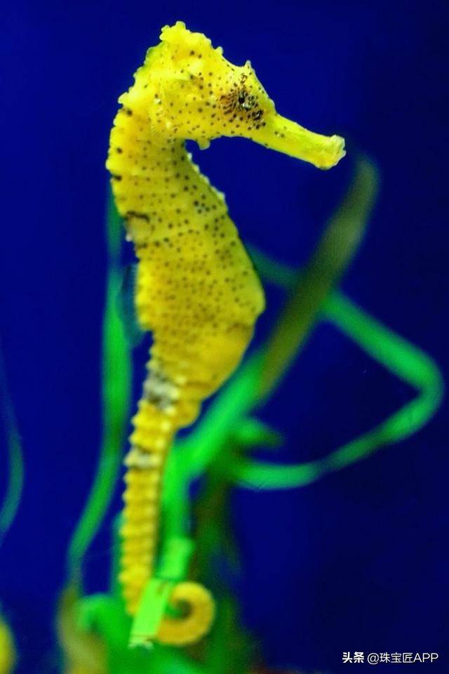 Seahorse/海马,因头部弯曲和身体成近直角,看起来像马而得名。身长5-30厘米,游得很慢,经常把尾端缠附在海藻的茎枝上。