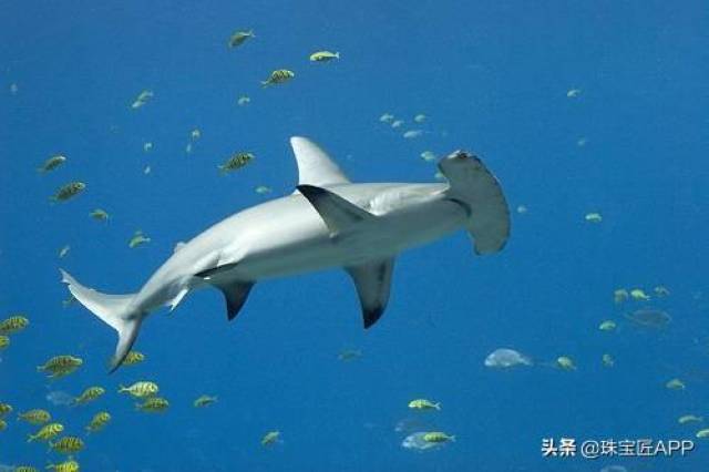 Hammerhead Shark/锤头鲨,又叫双髻鲨,因其头部左右的突起而得名。它的两只眼睛相距1米,和人一样具有双眼视觉,这种构造让它能精确判断与猎物的距离。