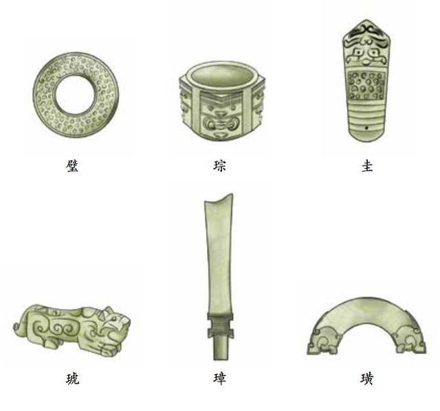 《周礼.春秋.大宗伯》中曾记载道:“以玉作六器,以礼天地四方,以苍璧礼天,以黄琮礼地,以青圭礼东方,以赤璋礼南方,以白琥礼西方,以玄璜礼北方”。