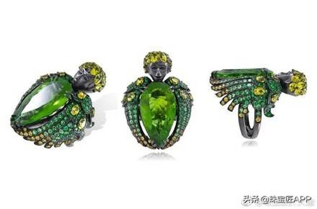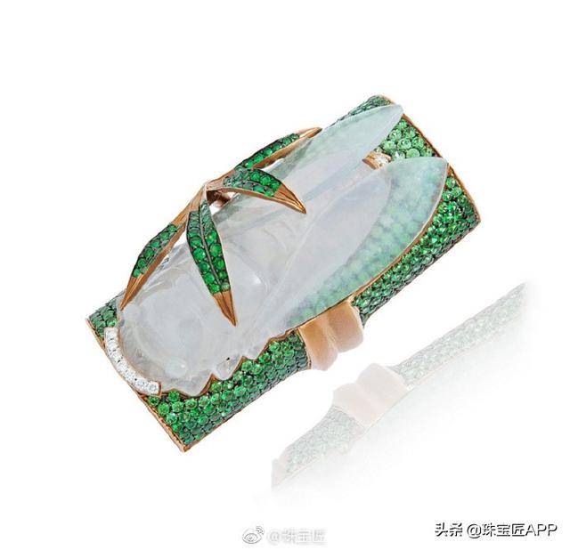 在宝石的选择上,采用雕刻翡翠为主石,彩色宝石为衬托,浓浓的东方气息与西方设计完美的融合在一起。