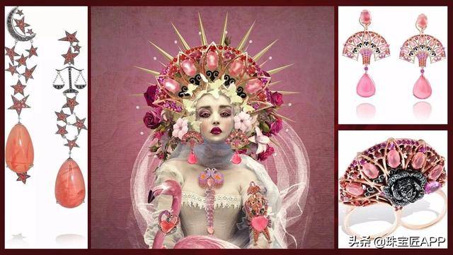 这个系列名字叫做“Rosa del Inca”,灵感来源于印加文明,她将木乃伊、火烈鸟等具有代表性的印加元素融入到珠宝设计当中,采用阿根廷的国石菱锰矿为主石,从而呼应宝石产地曾经孕育的印加文明。