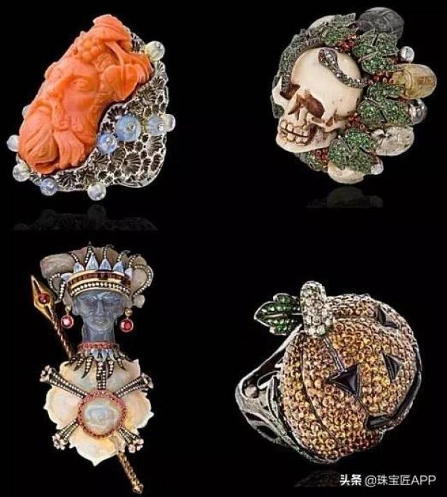 她从骷髅、蝙蝠、蛇等黑暗元素中汲取创作灵感,运用绿松石、象牙等珍贵的材质来呈现不同的视觉效果,创作不计成本,手法极致,独有的复古风格让人眼前一亮,呈现出一种令人意想不到的古典美。